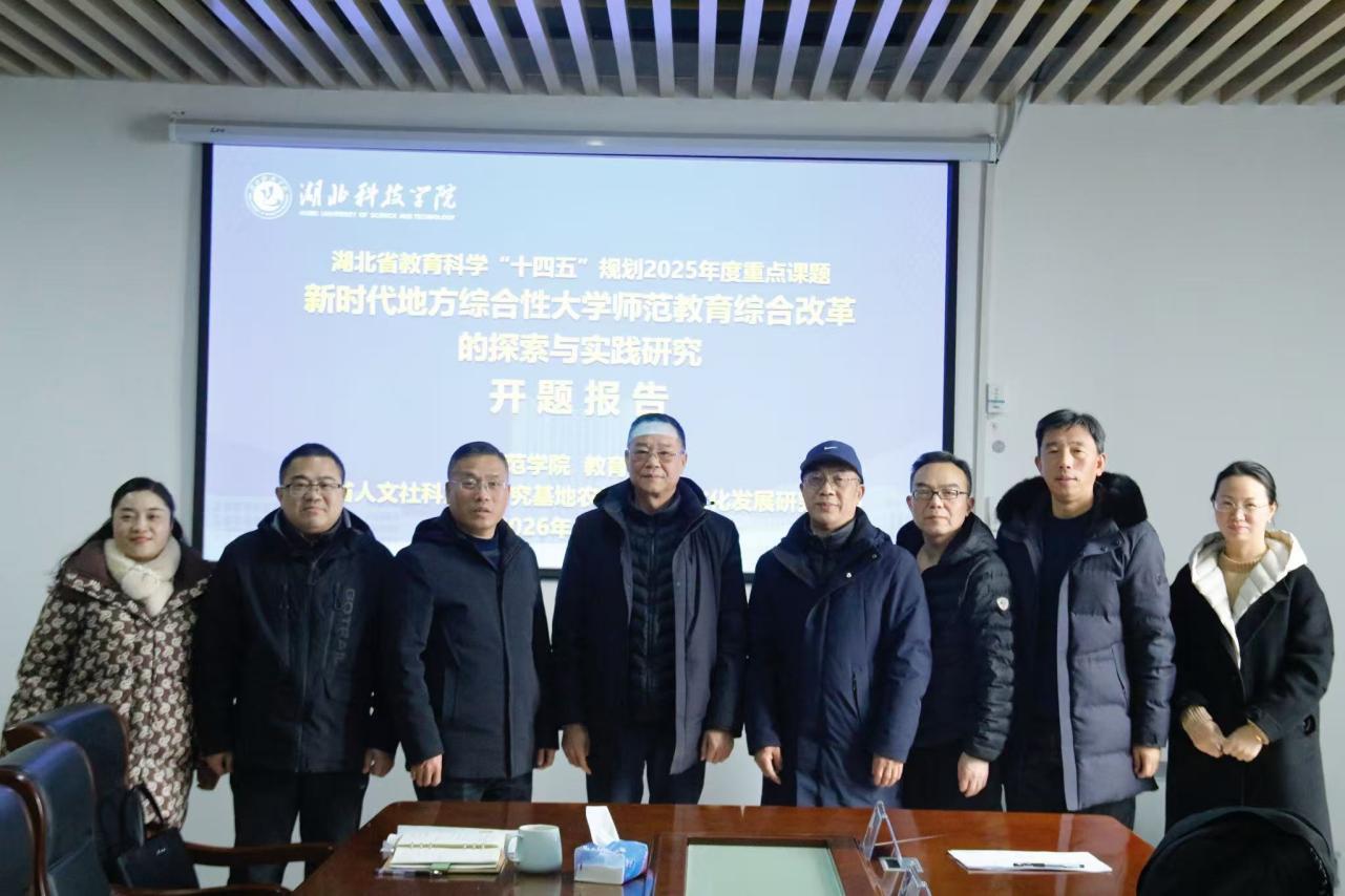 (通讯员 王文哲 章普 审稿 邹强)1月22日上午,湖北省教育科学“十四五”规划2025年度重点课题《新时代地方综合性大学师范教育综合改革的探索与实践研究》开题报告会在湖北科技学院教育学院顺利举行。华中师范大学杜时忠教授,华中师范大学杨炎轩教授,武汉纺织大学喻学林教授,湖北科技学院钟儒刚教授、咸宁实验外国语学校肖爱明教授受邀担任开题报告会评议专家。课题组核心成员、教育硕士专业部分研究生参加会议。