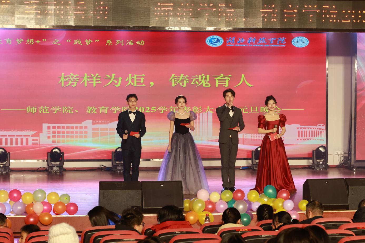为表彰优秀学子、凝聚奋进力量,喜迎元旦佳节,湖北科技学院教育学院表彰大会暨元旦晚会于2025年12月21日晚7:00在图书馆负一楼学术报告厅开展。
