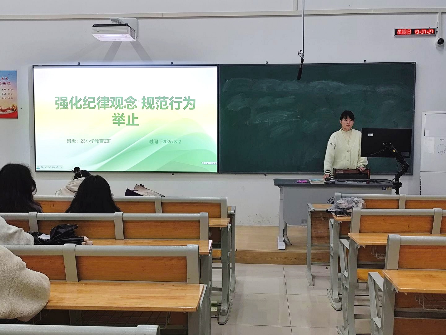 在追求知识卓越的征途中,学风不仅是学术成就的基石,更是学院文化深度与未来发展潜力的体现。为了全面贯彻“学在湖科”的战略部署,教育学院于 2025年3 月 2 日在揽胜楼集合教室召开“学风建设实效年”动员大会。各班学习委员主持会议,全院师生热情参与,共同开启了这场学风建设的征程。