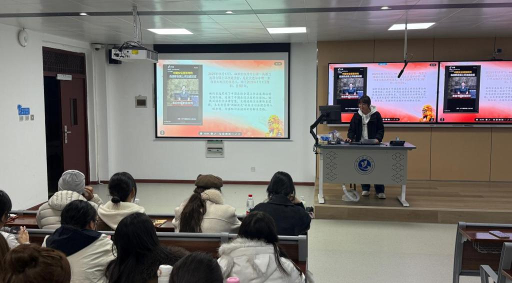 图为25级小学教育袁心同学分享时政热点
