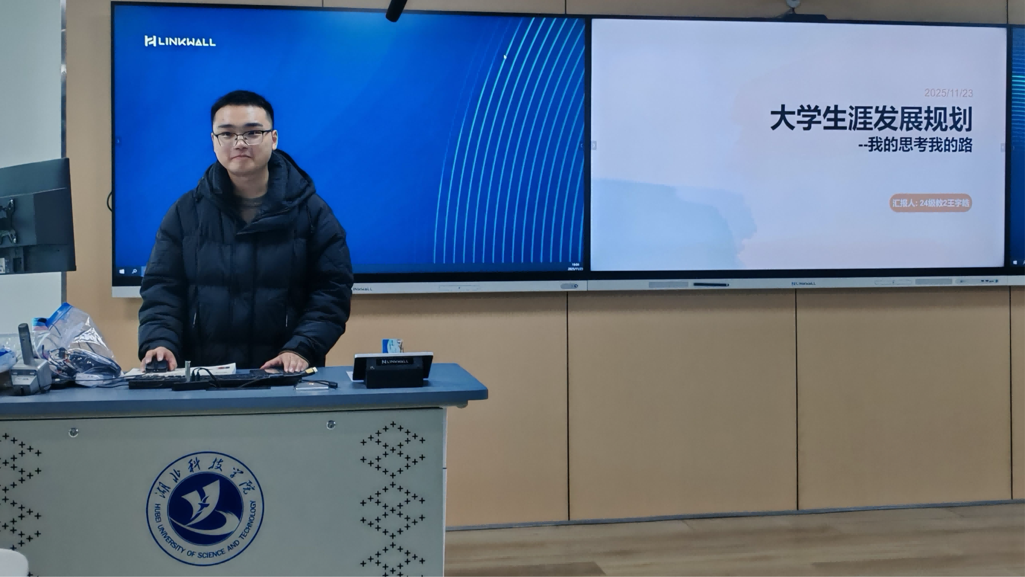 在24级班会中,24级教育学类二班的王宇皓同学以“我的思考我的路”为核心,围绕“大学生涯发展规划”开展主题分享。他结合个人成长目标,梳理了大学阶段的学业深耕、实践锻炼与职业发展路径,为未来投身教育事业或相关领域筑牢根基。