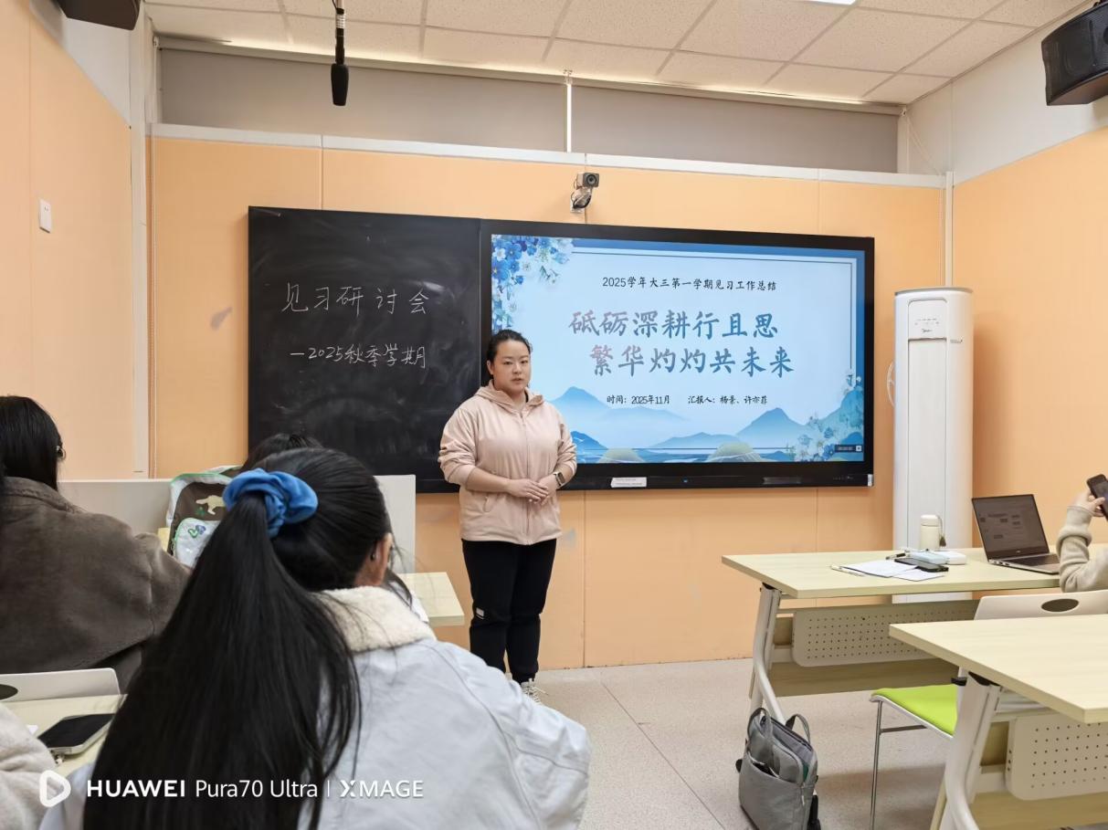 见习结束后,学院组织专题研讨会,学生们踊跃分享所见所思——有感于情境教学的魅力,有悟于课堂开放设计的意义,亦有对环境育人力量的重新认识。指导老师们悉心倾听,结合一线经验解答疑问,并从课堂节奏、互动设计等方面给予切实建议。老师们寄语见习生,要将观察转化为行动力,在持续反思中打磨技能,未来成为有温度、有智慧的教育工作者。