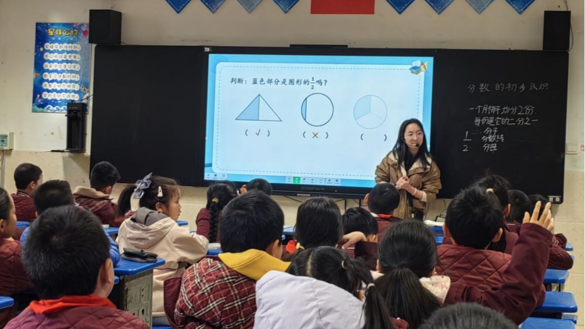 见习期间,学生们有幸观摩了咸宁外国语学校首届“菁桂杯”主题班会比赛及三年级数学公开课。在班会课上,教师们围绕“习惯”“爱国”“坚持”等主题,灵活运用情景表演、趣味板书等教学策略,将德育融入生动情境。数学课堂则通过“分月饼”生活化导入、折纸操作、开放式创造分数等环节,巧妙化解抽象概念,激发学生探究与创新思维。真实课堂的脉动,让见习生直观感受到教学设计背后的理念与智慧。