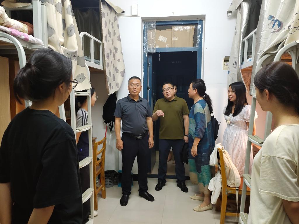 老师们逐一走访每间宿舍,重点查看了宿舍卫生、安全用电等情况,并与学生交流,详细了解学习、生活、科研等方面的情况以及遇到的困难。