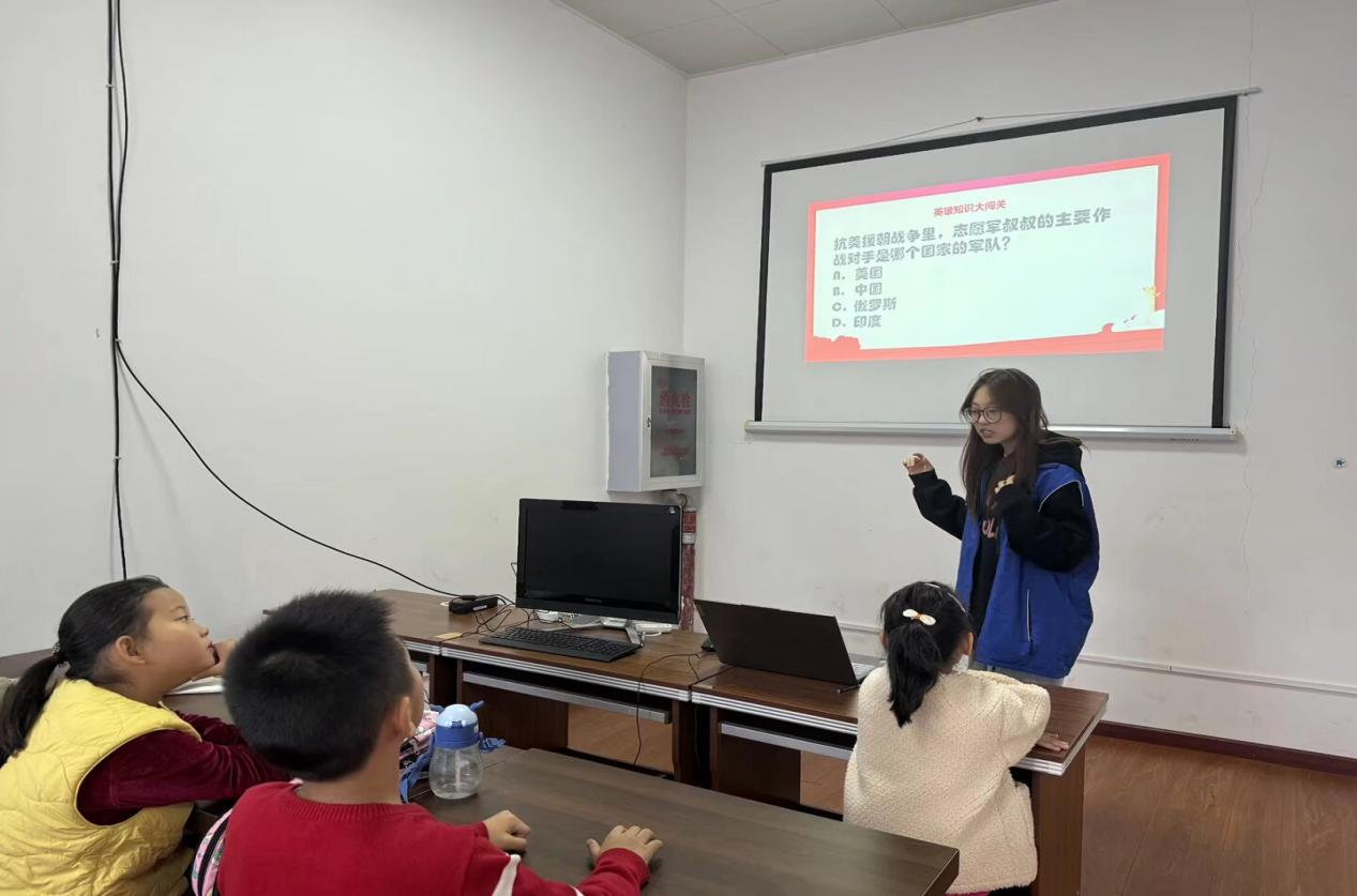为了进一步加深孩子们对抗美援朝战争和中国人民志愿军的了解,团队还组织了知识竞答游戏。孩子们积极踊跃参与,在抢答中巩固了所学知识,对志愿军的敬意也更加深厚。