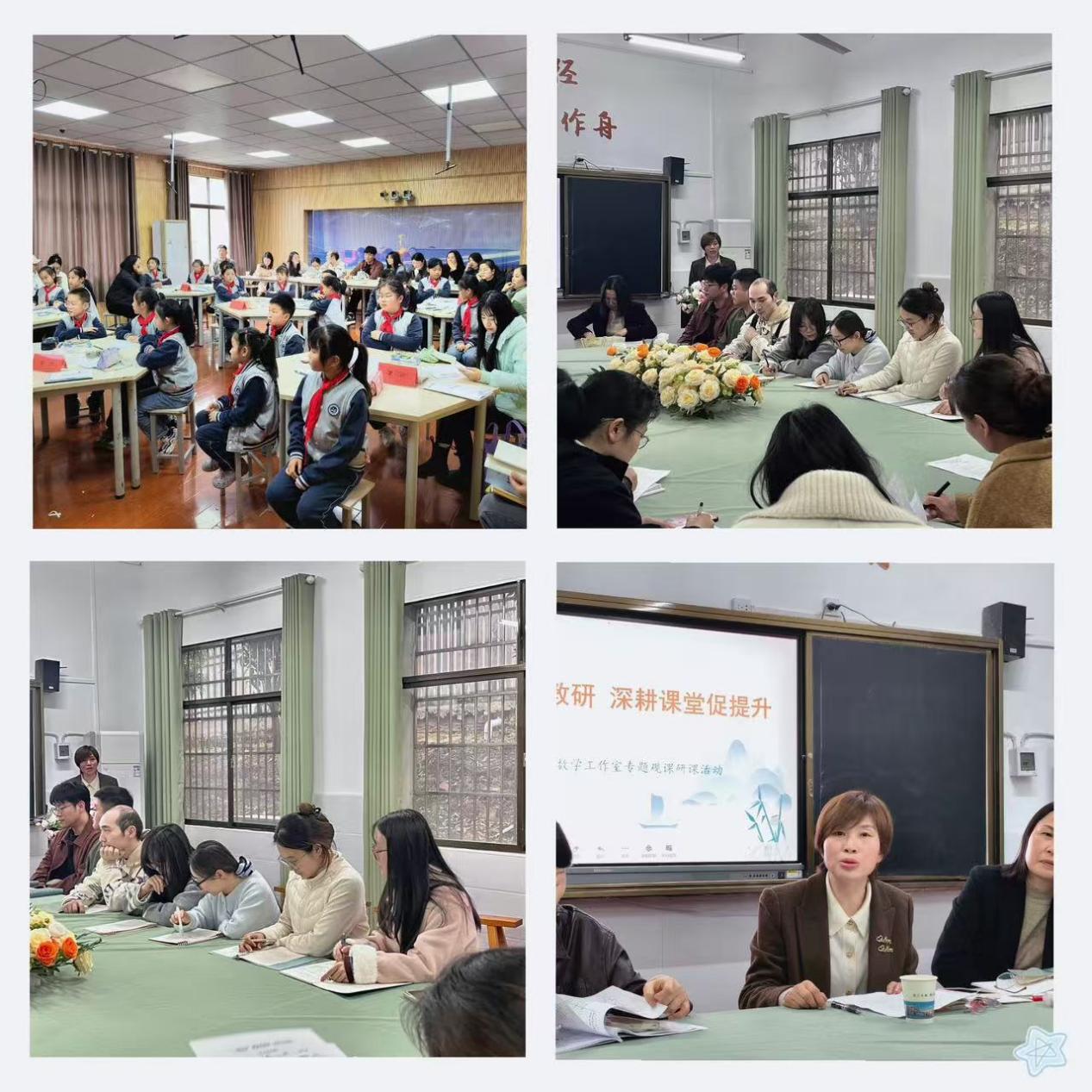 专家精准指导领航 明晰教研成长方向。咸安区教育局教研室吴真珍主任对两节示范课给予高度评价,充分肯定授课教师的教学功底与创新设计,并围绕“一核四学”课堂理念、课堂效率提升、教学细节优化、小组合作评价体系完善等方面给出专业指导。她强调,数学教学要心中有书、眼中有生,关注教材变化、捕捉课堂生成、落实素养目标,为后续教研工作指明方向。